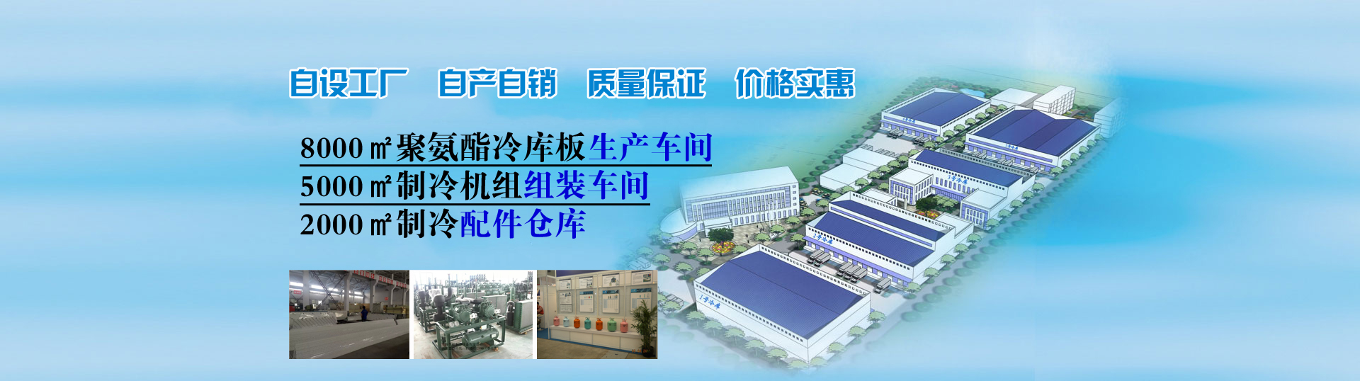自設8000平方聚氨酯生產(chǎn)車間、5000平方制冷機組組裝車間真正做到自產(chǎn)自銷、讓利客戶。